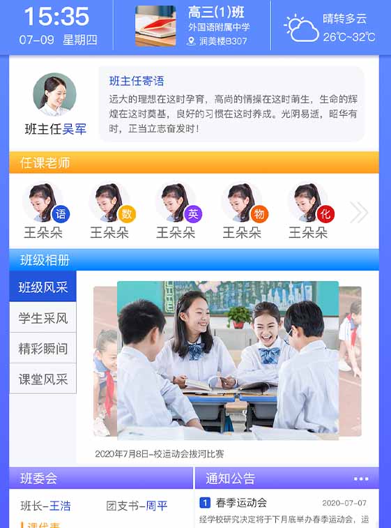 智慧班牌是為了能夠加強班級文化建設和班級風采展示,是專門為學校打造的一款關于班級文化展示的信息化產品,是專為老師、家長、孩子所打造的一個學習成長交流服務平臺。